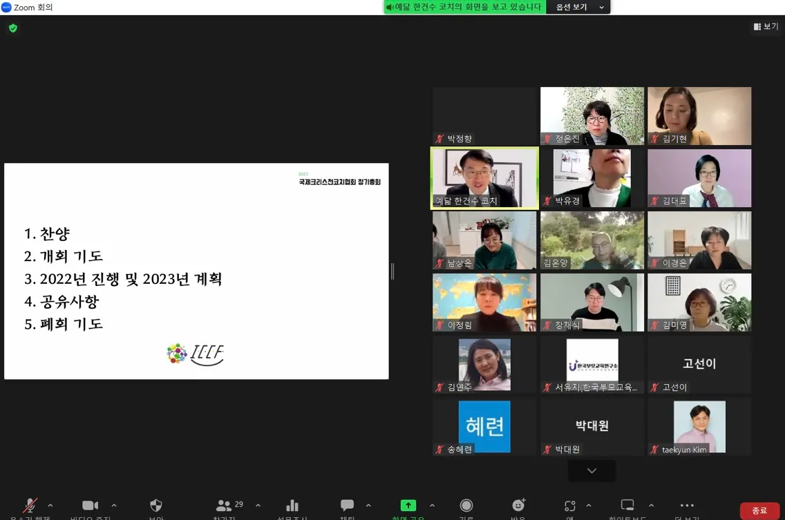 이제 2023년에 ICCF는 본격적인 교육 프로그램들이 진행될 예정이며 회원들의 계속교육을 위한 월례교육도 계획되어 있으며 묵상과 코칭의 콜라보 북클럽도 기획 중에 있습니다.