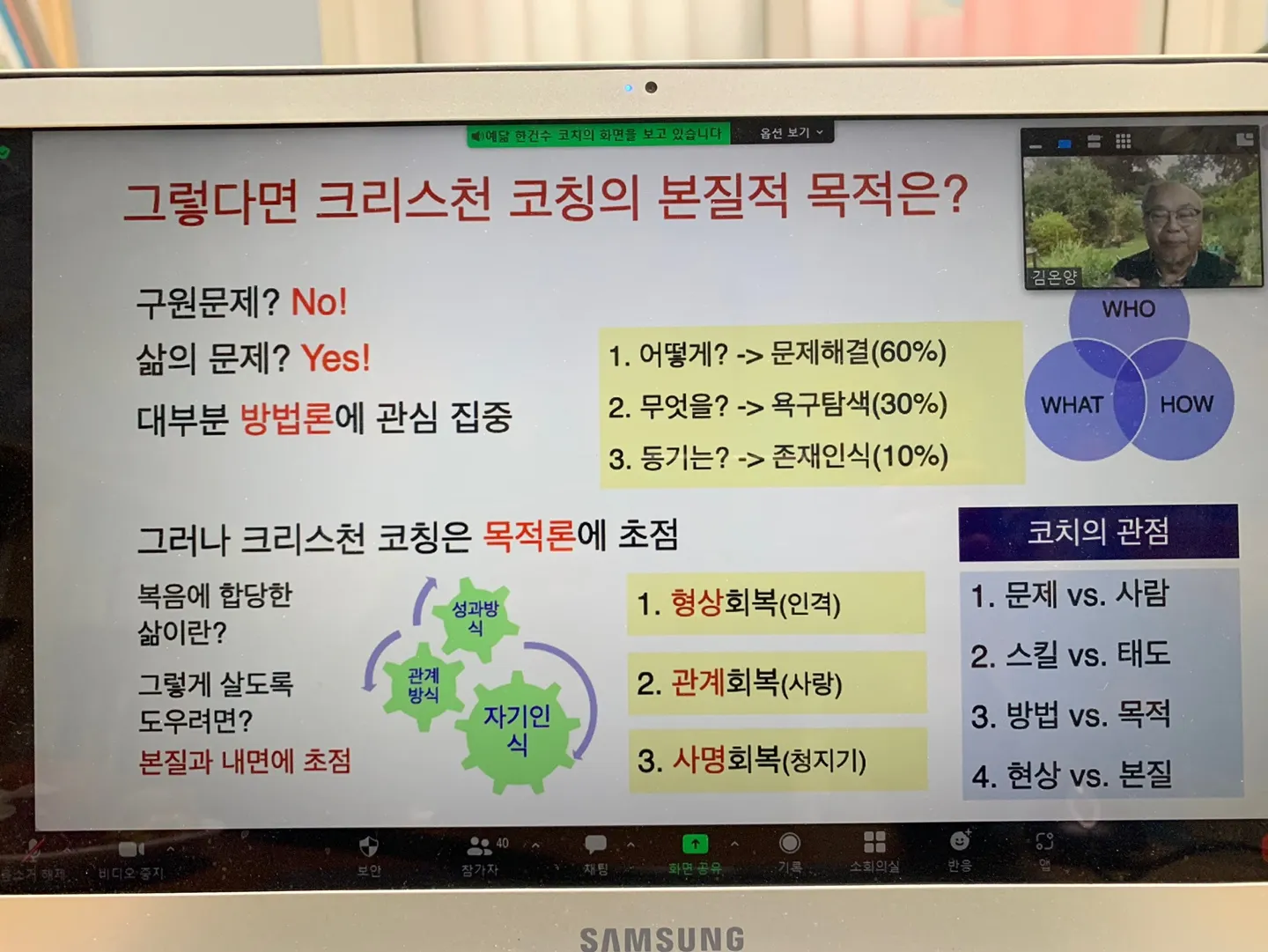 ICCF를 특별히 사랑하시는 김온양 고문님께서 원 코치, 원 커뮤니티 확산:하나의 공동체에 한 명의 코치를 세우는 비전이라는 주제 아래 크리스천 코칭의 본질적 목적에 대해 명쾌한 강의를 해주셨습니다. 그리고 장재식, 박유경, 임은락 코치님께서 코치로서의 역할과 삶 속에서의 변화, 비전에 대한 나눔은 우리 모두에게 감동을 주었습니다.