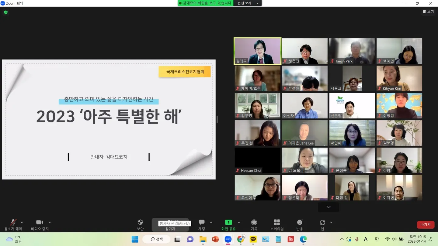 충만하고 의미 있는 삶을 디자인하는 시간이라는 부제를 가진 2023, 아주 특별한 해 프로그램을 김대묘 고문님께서 진행해 주셨습니다
